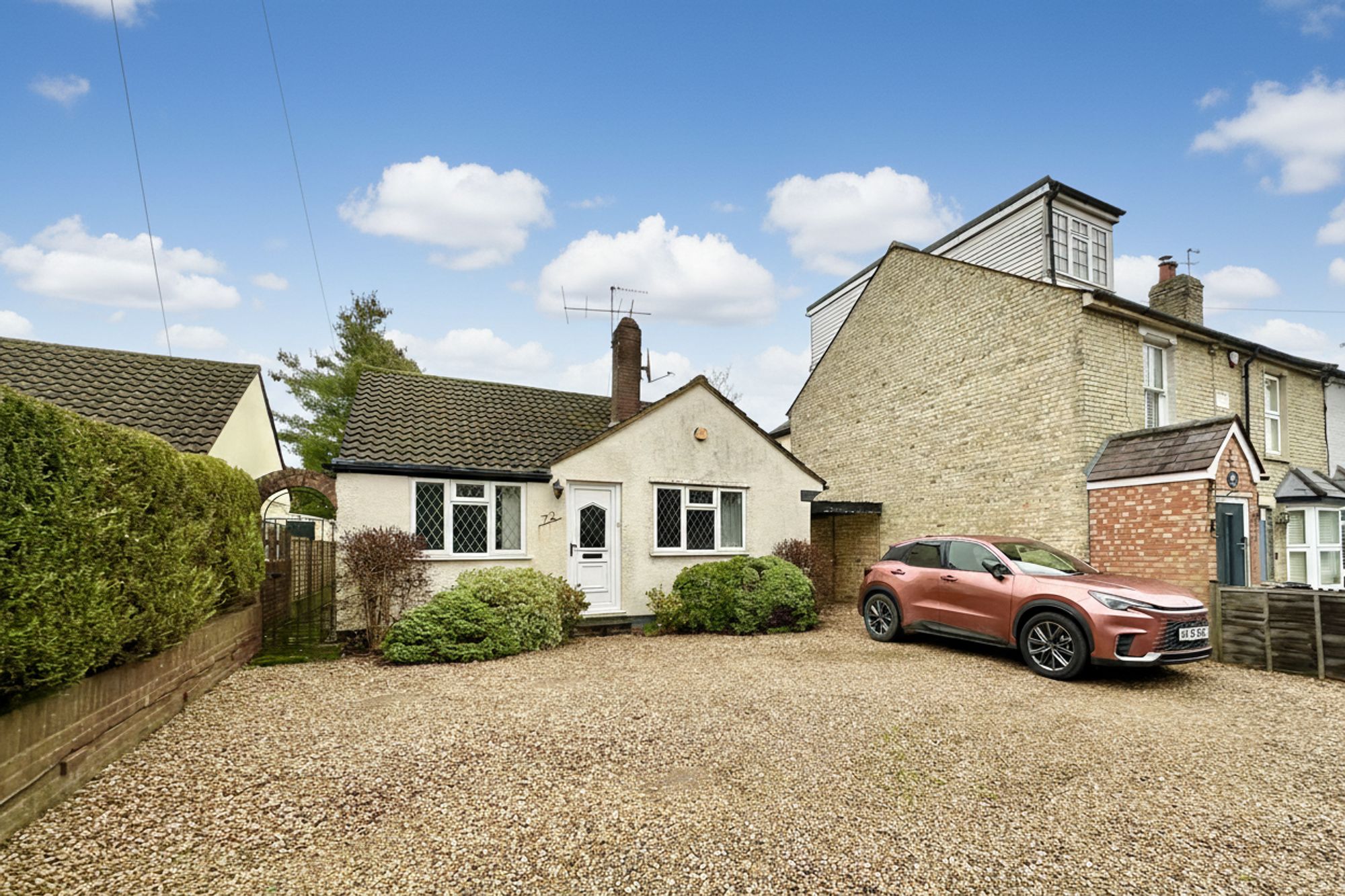 A UNIQUE, TWO/THREE BEDROOM, DETACHED BUNGALOW, in the heart of Shenley Village, a level walk to local shops, bus stops, pubs and village amenities. Spacious & Beautifully-maintained with cottage style kitchen and large lounge/diner. Large private rear garden with outbuilding and wide side access. Potential to extend STPP. Large Driveway on a wide plot, with space for 2/3 cars. Chain free.